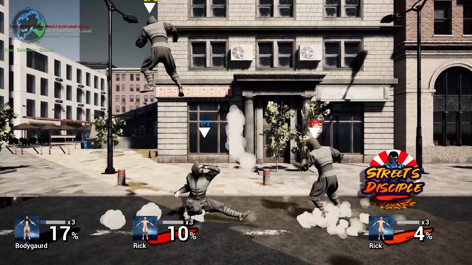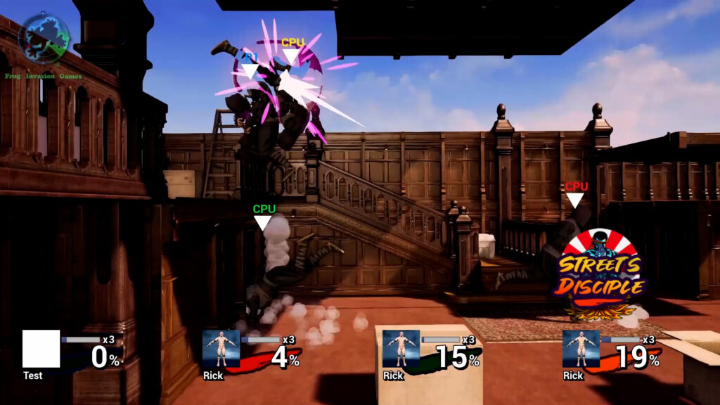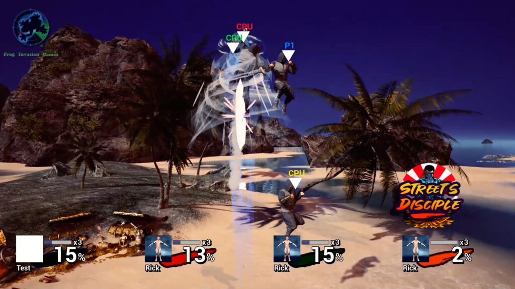platform fighter for a single player versus 3 computer controlled characters. You play as a street disciple ninja and the ninjas are at war with each other.